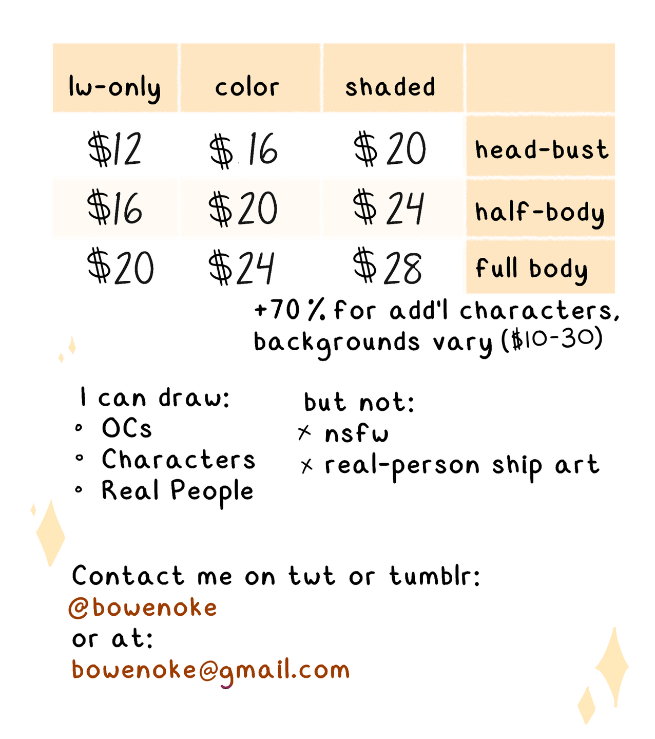 Prices shown are for non-commercial commissions.